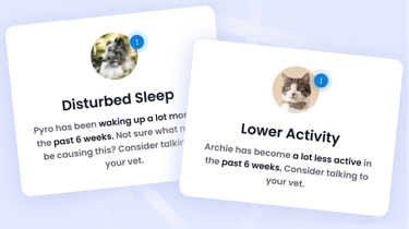 Activity Alerts: Sent if your pet's activity declines over 6 weeks or 6 months.