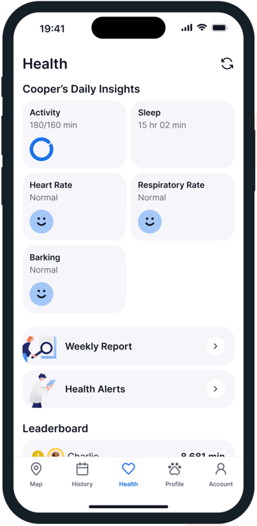 Pets can't always tell us when something's wrong. Keep your best friend thriving with health monitoring features that help you spot potential issues early.