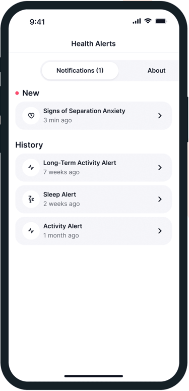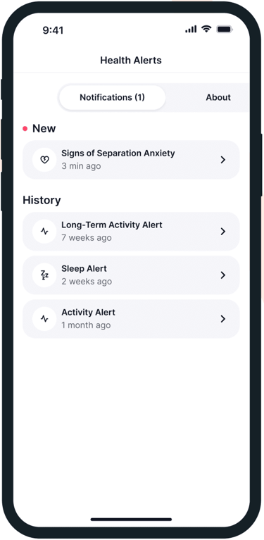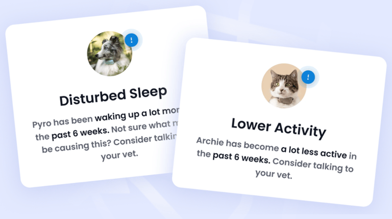 Get notified if your pet's tracker detects unusual patterns in their sleep or activity.