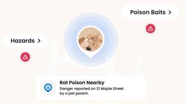 See nearby risks to pets reported by Tractive users in your area. Help keep other pets safe and submit a report when you come across a danger.