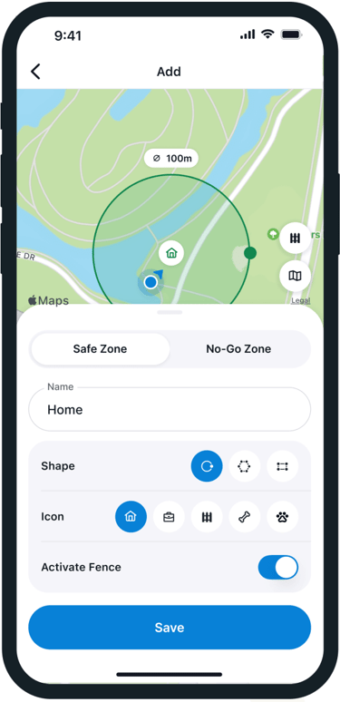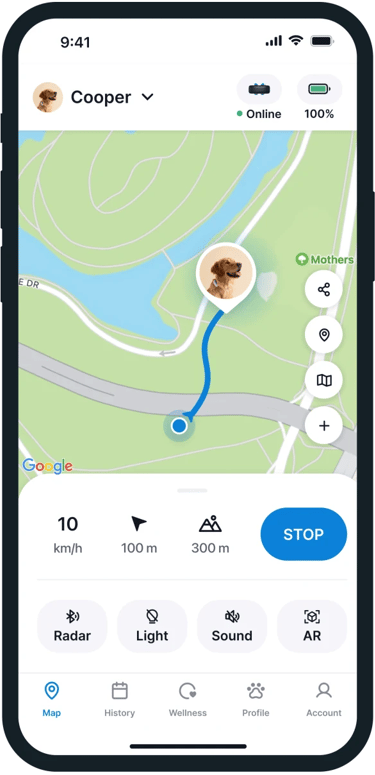 Create custom safe zones and get instant alerts if your pet ventures out of bounds.