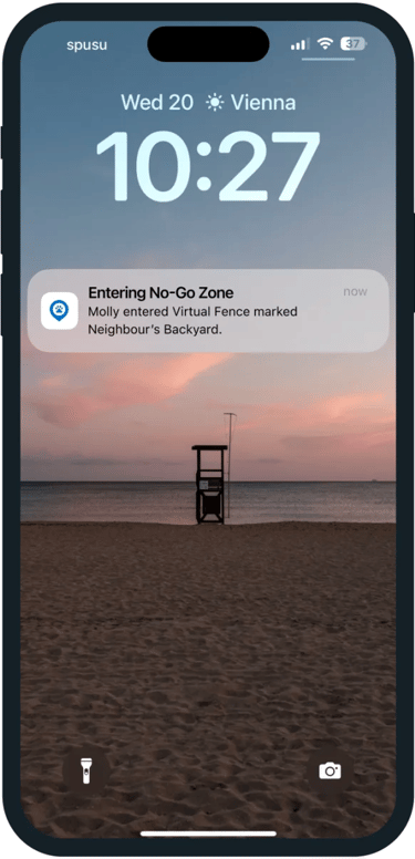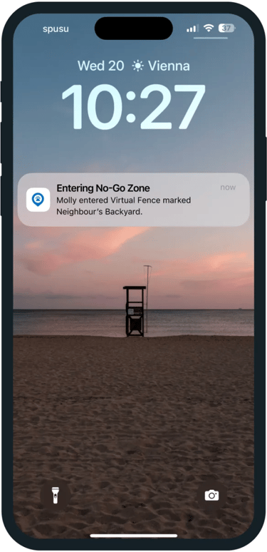 Create safe and no-go zones for your pet. Get alerted every time they wander too far so you can get them home safe.
