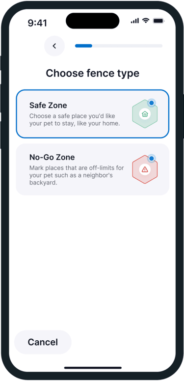 Choose either a safe or a no-go zone. Name your fence and make your shape fence square, circle, or custom-shaped.