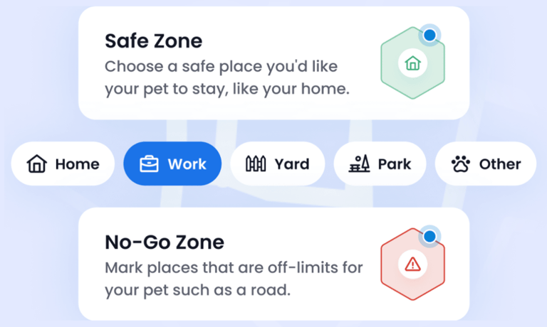 Create safe zones like your garden or local park, so your pet can roam freely within predefined boundaries.